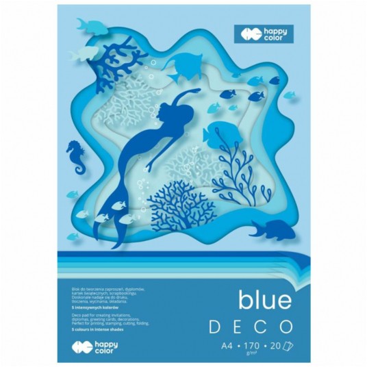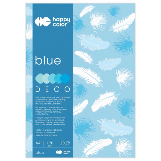 Blok deco blue A4, 170 g/m2, 20 arkuszy, 5 kolorów