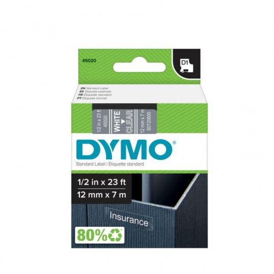 - Taśma Dymo D1 12 mm x 7 m biały/przezroczysty