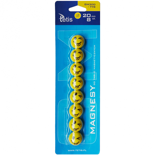 - Magnesy Tetis są niebywale mocne i trwałe, zapewniają prosty i praktyczny sposób przymocowania dokumentu lub notatki do powierzchni magnetycznych - Doskonałe do tablic i innych powierzchni magnetycznych - Pakowane na blistrze - Średnica: 20 mm - Kolor: żółty - Wzór: z językiem - Ilość: 8 sztuk