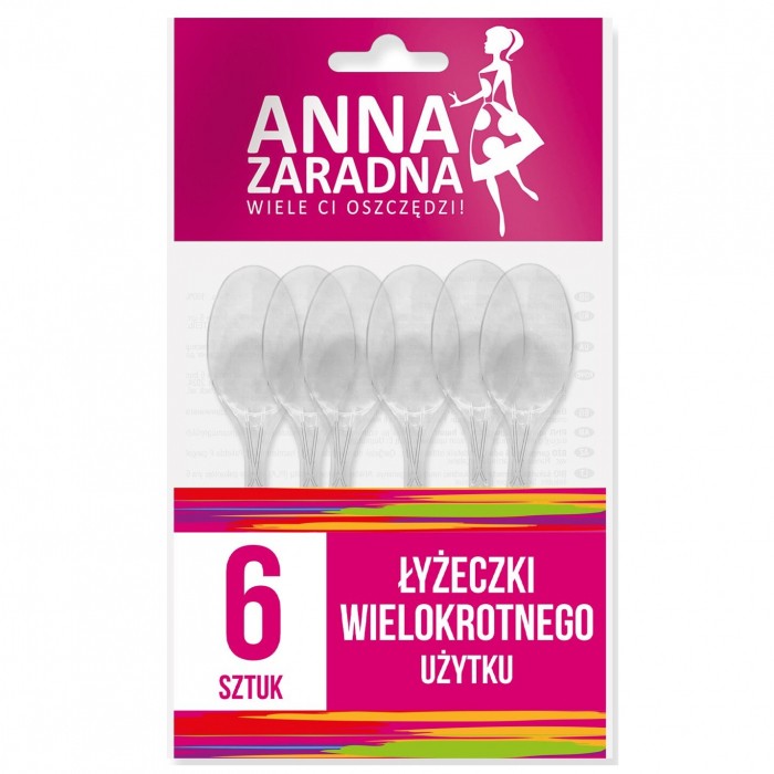 - Łyżeczki wielokrotnego użytku marki Anna Zaradna są grube i wytrzymałe, dzięki czemu nie łamią się i nie wyginają podczas użytkowania - Świetnie sprawdzają się podczas wszelkiego rodzaju imprez okolicznościowych w domu i na świeżym powietrzu oraz na grillach, piknikach, biwakach, wycieczkach - W opakowaniu znajduje się 6 sztuk - Wykonane z polistyrenu (PS) - Można je zmywać w zmywarce przez 125 cykli - Nie używać w kuchenkach mikrofalowych i piekarnikach - Opakowanie posiada praktyczną tasiemkę umożliwiającą wielokrotne zamykanie i otwieranie woreczka - Zastosowanie: do potraw na zimno i ciepło, na grilla, na imprezy okolicznościowe domowe i plenerowe, w kuchni, podczas eventów, na pikniku, na biwaku - Kolor: transparentny - Ilość: 6 sztuk - Surowiec: polistyren - Długość: 14,5 cm - Szerokość: 1,5 - 3 cm