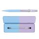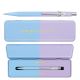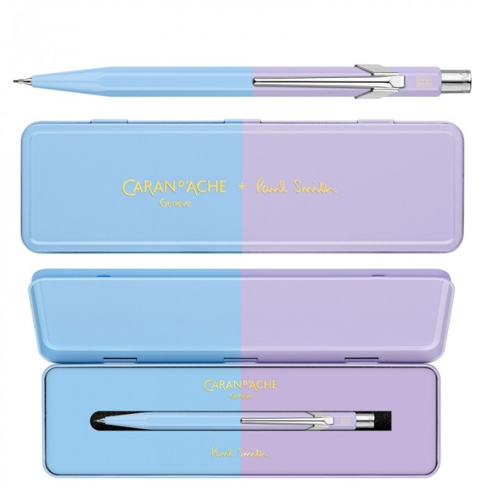 - Ołówek automatyczny szwajcarskiej marki Caran d’Ache z kolekcji limitowanej Paul Smith Edycja 4, kolor Sky Blue / Lavender - Ołówek wykonany z aluminium o sześciokątnym przekroju, idealnie dopasowany do dłoni - Posiada przyciskowy mechanizm wysuwu grafitu 0,5mm HB i gumkę ukrytą pod przyciskiem - Ołówek umieszczony jest w dwukolorowym metalowym pudełku z logo Caran d’Ache + Paul Smith