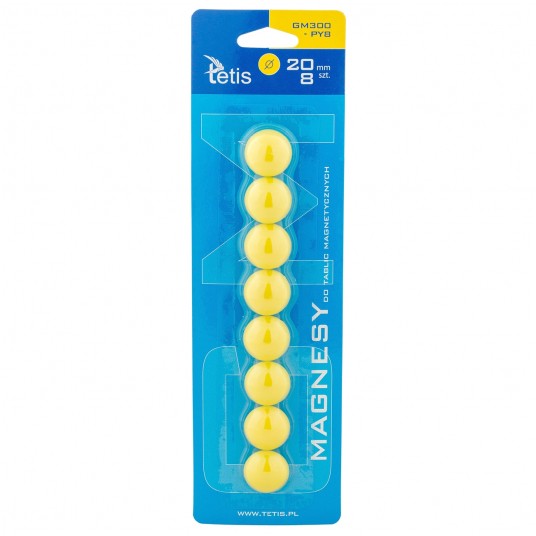 - Magnesy Tetis są niebywale mocne i trwałe, zapewniają prosty i praktyczny sposób przymocowania dokumentu lub notatki do powierzchni magnetycznych - Doskonałe do tablic i innych powierzchni magnetycznych - Pakowane na blistrze - Średnica: 20 mm - Kolor: żółty - Ilość: 8 sztuk