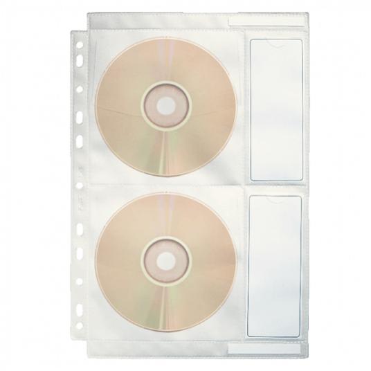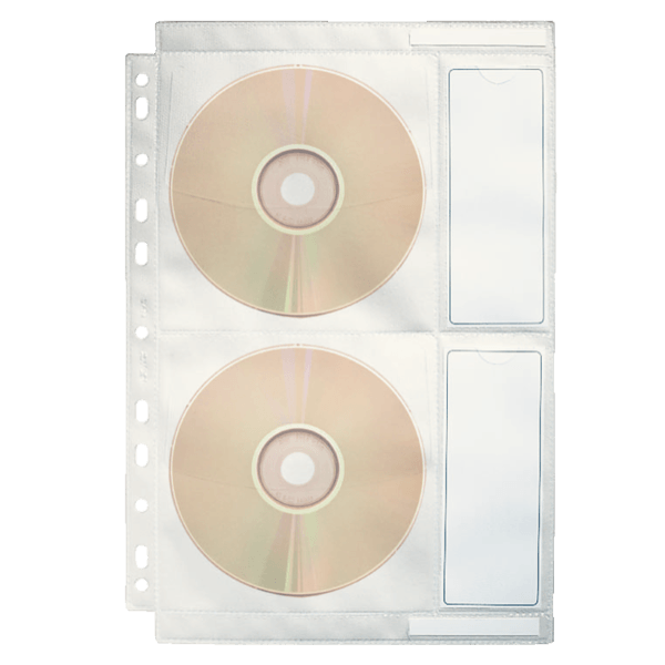 - Specjalna warstwa ochronna zabezpiecza płytę CD - Uniwersalna perforacja umożliwia przechowywanie płyt w segregatorze lub skoroszycie - Pozwala na zaoszczędzenie miejsca na biurku - W zestawie etykiety i fiszki