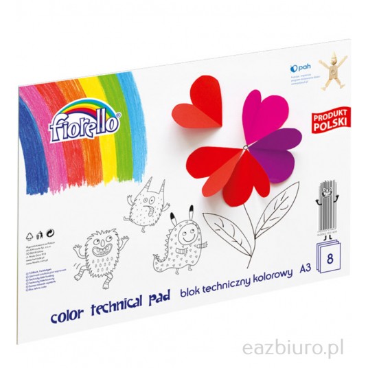 Blok techniczny kolorowy Fiorello A3/8 kartek