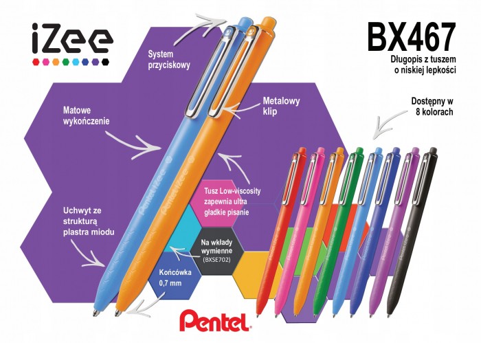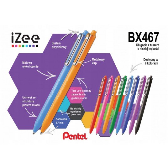 Długopis olejowy Pentel izee 0,7 mm bx467 czerwony