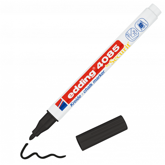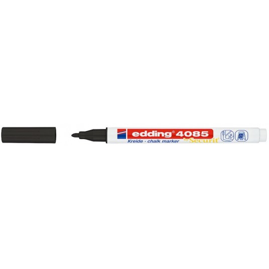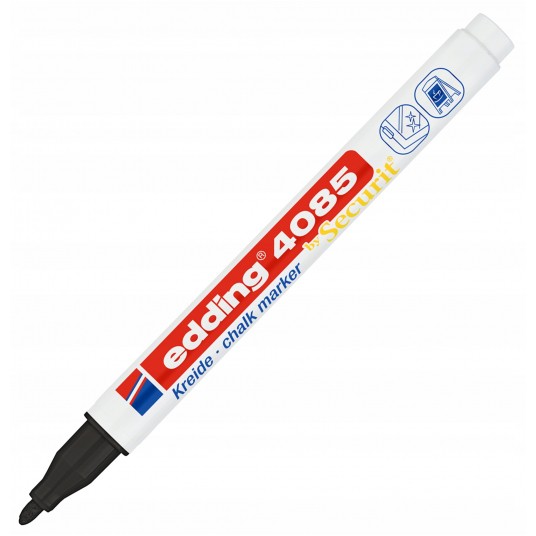 - Marker na bazie płynnej kredy, z okrągłą końcówką, o neutralnym zapachu. - Doskonały do wykonywania napisów i zdobień na oknach, witrynach i innych gładkich powierzchniach. - Zmywalny za pomocą mokrej ściereczki. - Przepływ tuszu regulowany zaworem. - Linia markerów 4085 została stworzona we współpracy ze znanym producentem markerów i tablic- Securit. - Szerokość linii pisania 1-2 mm. - Kolor czarny.