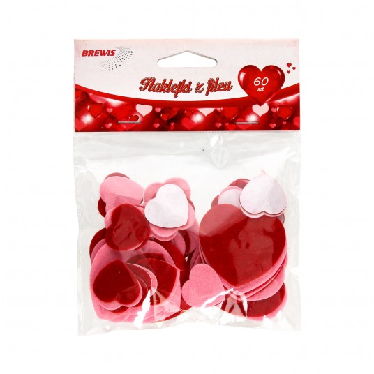 - Filcowe naklejki marki Brewis. - Świetny materiał do wszelkich prac kreatywnych, tworzenia ozdobnych kartek, zaproszeń, kopert, prezentów a także dioram i różnego rodzaju działalności dekoratorskiej. - Wzór: serca - Ilość: 60 szt.