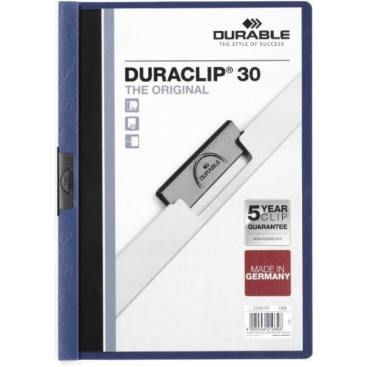 Skoroszyt Plastikowy z grzbietem zaciskowym 30 kartek granatowy Durable