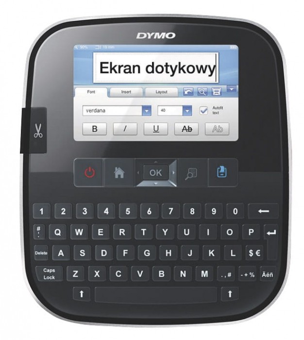 - Duży, kolorowy ekran dotykowy – poraz pierwszy w drukarce etykiet DYMO! Łatwe tworzenie, edytowanie i formatowanie za pomocą funkcji dotykowych - Szybkie wprowadzanie tekstu na komputerowej klawiaturze QWERTY - Dzięki automatycznej obcinarce zapomnisz o ręcznym rozcinaniu - Modyfikuj etykiety dzięki ogromnej liczbie możliwości w postaci 10 rodzajów czcionek, 25 rozmiarów czcionek, 32 stylów tekstu, 5 obramowań i 100 wbudowanych symboli or clipartów - Drukuj czytelne grafiki, kody kreskowe i logo w rozdzielczości 300 dpi - Podłącz urządzenie do komputera PC i modyfikuj czcionki lub grafiki na etykietach za pomocą oprogramowania DYMO Label™ Software – możliwe jest również pobieranie elementów w celu edycji i szybkiego drukowania - Udostępniaj bez utraty ustawień – nowe profile użytkowników umożliwiają zachowywanie etykiet, ustawień i danych dla 5 różnych użytkowników - Przechowywanie ponad 500 etykiet w urządzeniu - Szybkie etykietowanie – dwukrotnie większa szybkość pracy niż w przypadku pozostałych drukarek etykiet DYMO - Zapomnij o kosztach związanych z bateriami jednorowymi i konieczności ich utylizacji - korzystaj z zestawu ładowalnych akumulatorów - Obsługa taśm DYMO D1 o szerokości: 6, 9, 12, 19 i 24 mm - W zestawie znajduje się urządzenie LabelManager™ 500TS, zestaw ładowalnych akumulatorów, kabel USB, startowa kaseta z białą taśmą 24 mm D1 do czarnego nadruku, instrukcja szybkiej instalacji, karta rejestracyjna i karta gwarancyjna - 2 lata gwarancji + 1 rok po zarejestrowaniu na stronie www.dymo.com