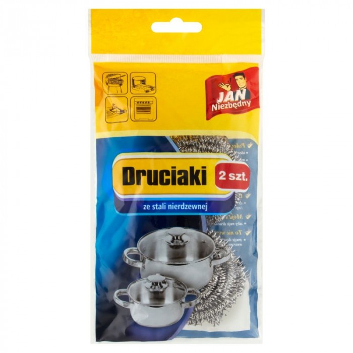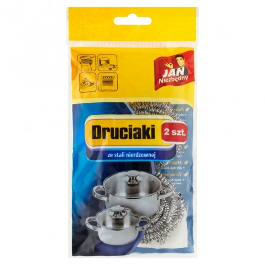 - Druciak ze stali nierdzewnej jest doskonałym pomocnikiem w kuchni - To niezastąpiona pomoc, która sprawdzi się przy czyszczeniu mocnych zabrudzeń - Idealny do usuwania zabrudzeń ze stalowych i aluminiowych garnków, patelni, emaliowanych oraz żaroodpornych naczyń - Wypróbuj klasyczny druciak ze stali nierdzewnej, by sprzątanie w kuchni i zmywanie naczyń stało się przyjemniejsze - 2 sztuki w opakowaniu
