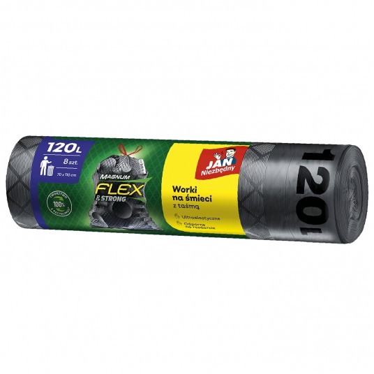 - Niezwykle elastyczne i wytrzymałe worki, z wytłoczonym wzorem diamentu, który posiada drobne wgłębienia rozciągające się przy nacisku od wewnątrz - Dzięki temu worek nie rozdziera się nawet przy całkowitym wypełnieniu - 3 warstwy folii LDPE wykonana z materiałów pochodzących w 100% z recyklingu oraz tłoczenie powodują, że worki są grubsze, mocniejsze i nieprzejrzyste - Eliminują ryzyko wycieków. - Szczelne zamknięcie taśmą ściągającą zabezpiecza przed wydostaniem się zapachów na zewnątrz. - Sysytem Interleave zapewnia łatwe wyjmowanie worka z rolki- nie trzeba go odrywać, wystarczy odwinąć. - Pojemność: 120l - 8 sztuk