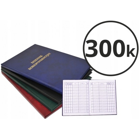 - dzienniki do ewidencji korespondencji przychodzącej i wychodzącej (dzienniki podawcze) - okładka tekturowa sztywna oklejona tworzywem skóropodobnym w czterech kolorach: granatowym, bordowym, zielonym i czarnym - dostępne w wersji 96 kartkowej po 10 szt., 192 kartki i 300 kartek, pakowane po 5 szt. - format: A4