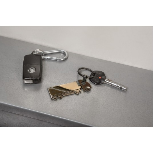 - Brelok do kluczy w kształcie TIRa, dwustronny, wykonany z metalu