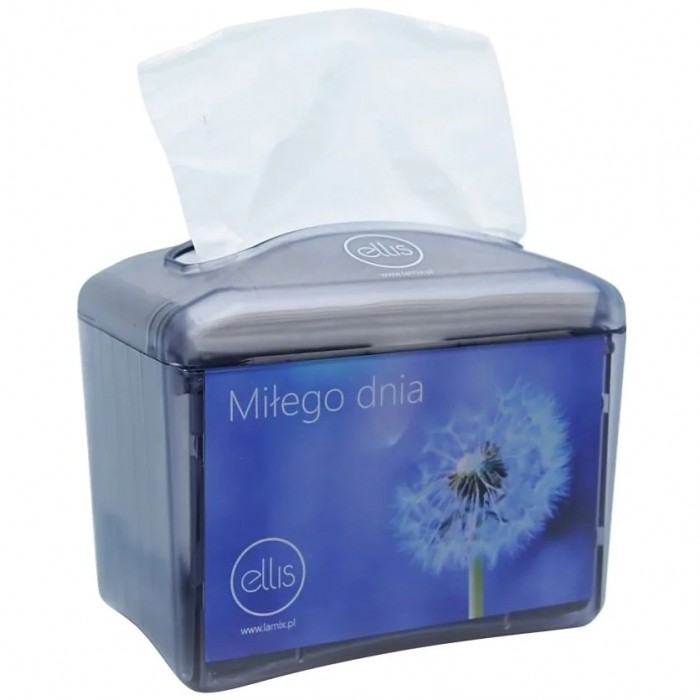 - Podajnik do serwetek wykonany z wytrzymałego plastiku ABS - Spód podajnika wyłożony gumową matą, zapobiegającą przesuwaniu się - Podajnik wyposażony w mechanizm wypychający serwetki - Serwetki wychodzą pojedynczo - Ponadto charakteryzuje się mniejszą częstotliwością uzupełniania dozownika - Oba dłuższe boki mają możliwość umieszczenia spersonalizowanej wkładki - Pasujące serwetki to: Ellis 1021 - Wymiary podajnika: 124 x 190 x 159 mm