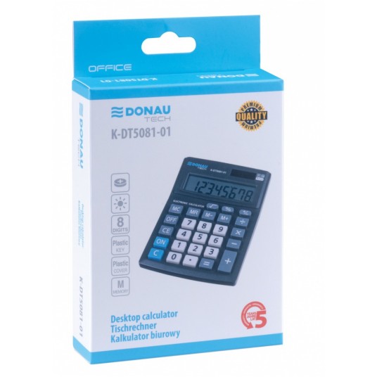 Kalkulator biurowy Donau tech office, 8-cyfowy wyświetlacz, 137x101x30mm, czarny