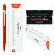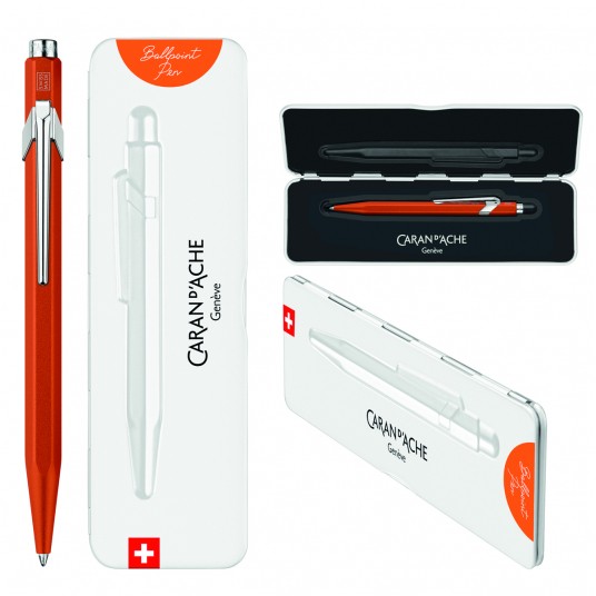 - Długopis 849 szwajcarskiej marki Caran d’Ache z kolekcji Colormat-X, kolor pomarańczowy w pudełku Slimpack. - Colormat-X to nowa, tęczowa kolekcja ośmiu długopisów 849, w żywych kolorach. Gama odcieni, doskonale odzwierciedla DNA firmy i doświadczenie w zakresie barw. - Kultowy długopis 849 z aluminiowym, sześciokątnym korpusem ma wysokiej jakości mikropiaskowane i anodowane wykończenie, klips i przycisk są wykonane z niklowanej stali. Długopis ten został zaprojektowany z myślą o trwałości, jest nasycony kreatywnością, know-how i silnymi wartościami Caran d'Ache. Długopis posiada przyciskowy mechanizm wysuwu wkładu. Wyposażony w bardzo pojemny wkład długopisowy Goliath niebieski M, który pozwoli nam na zapisanie 600 stron A4. - Długopis umieszczony jest w specjalnym opakowaniu nowej generacji typu Slimpack z naklejką, która informuje nas jaki kolor długopisu znajduje się w środku. Magnetyczny, silikonowy klin utrzymuje długopisy podczas otwierania.