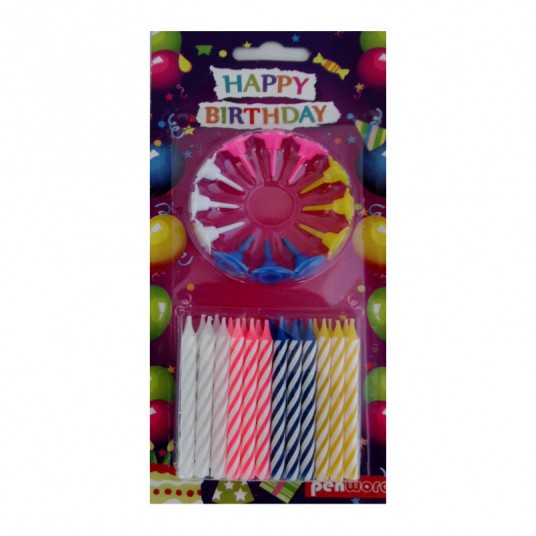 - Piękne kolorowe świeczki dekoracyjne do tortu dla młodszych i starszych solenizantów i jubilatów - W zestawie: - 24 świeczki - 12 podstawek do świeczek