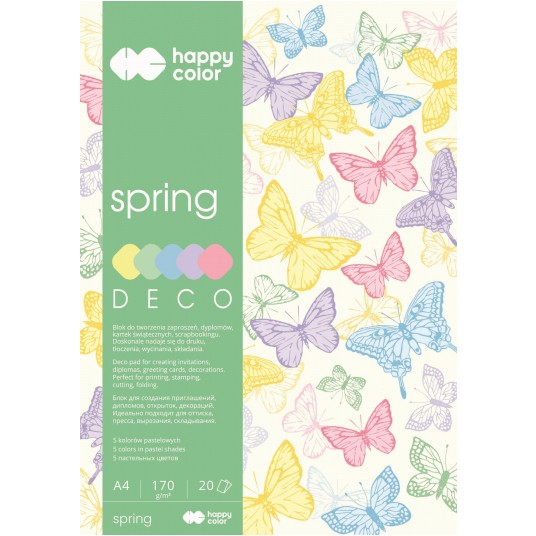 - Blok Deco idealny do tworzenia zaproszeń i kartek okolicznościowych - Papier barwiony w masie o gładzonej powierzchni - Tonacje dobrane tak aby łatwo można było łączyć kolory ze sobą - Wysoka odporność na blaknięcie przez promienie UV - Bezkwasowy, bezdrzewny - Nadaje się do drukarek atramentowych i laserowych - Certyfikaty: FSC, PEFC, SGS, ISEGA, ISO 9706 - Zastosowanie: scrapbooking, zaproszenia, kartki, dekoracje, wycinanki - Format: A4 - Gramatura: 170 g/m2 - 20 arkuszy - Motyw: Spring