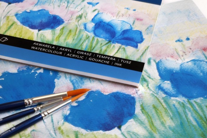 - Wysokiej jakości blok do malowania farbami akwarelowymi, temperami, gwaszem oraz farbami akrylowymi, a także do ołówka, pasteli, tuszu