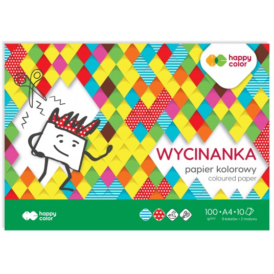 - Jedyna wycinanka na rynku zawierająca kartki z motywami - Kolorowy papier zadrukowany jednostronnie - Intensywne kolory wybrane specjalnie do tej kolekcji - Papier o gładkiej, błyszczącej powierzchni - Łatwy do wycinania i sklejania - Zawiera unikalne kartki z motywem kropek i pasków - Zastosowanie: laurki, kartki okolicznościowe, wydzieranki i wyklejanki - Gramatura: 100 g/m2 - 10 arkuszy - Format A4