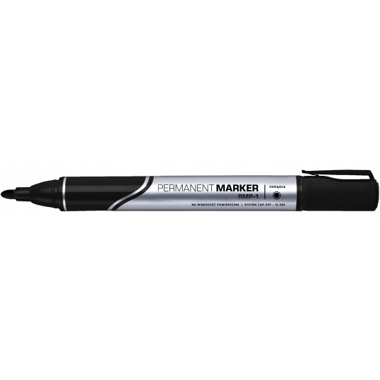 - Marker wyposażony w okrągłą fibrową końcówkę piszącą - Doskonały do pisania po prawie każdej powierzchni: papierze, szkle, metalu i plastiku - Szybkoschnący, nietoksyczny tusz, nie rozmazuje się, nie blaknie pod wpływem promieni słonecznych - Tusz spełnia normę ISO 12757-2 - Marker może być pozostawiony bez zatyczki przez dwa tygodnie (nie krócej niż produkty z systemem „dry safe ink” i „cap off”) - nie zaschnie w warunkach normy ISO 554 - Korek w nasadce i obudowie określa kolor tuszu - Kolor: czarny