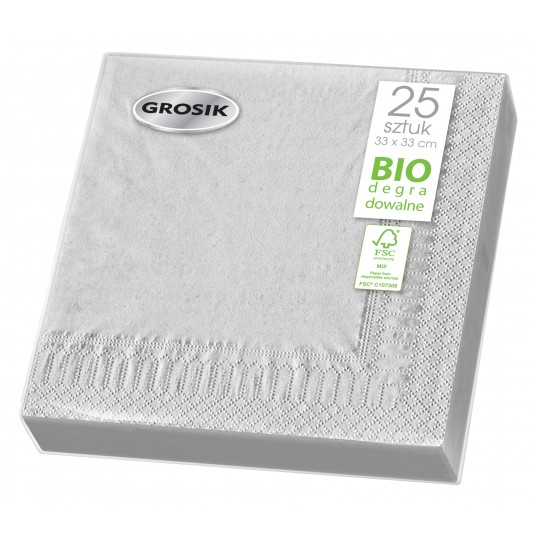 Serwetki na stół Grosik srebrne 33x33 cm 25 szt.
