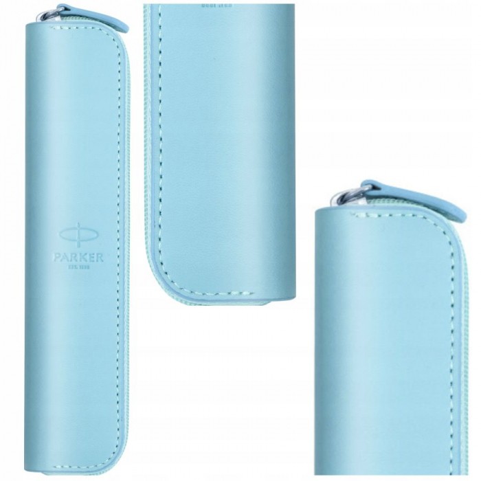 - Etui Parker wykonane ze skóry w odcieniu delikatnego koloru niebieskiego - Etui przeznaczone na pojedynczy produkt - Zapinane na zamek błyskawiczny - Wymiary: 160 mm x 36 mm x 17 mm
