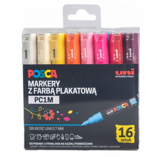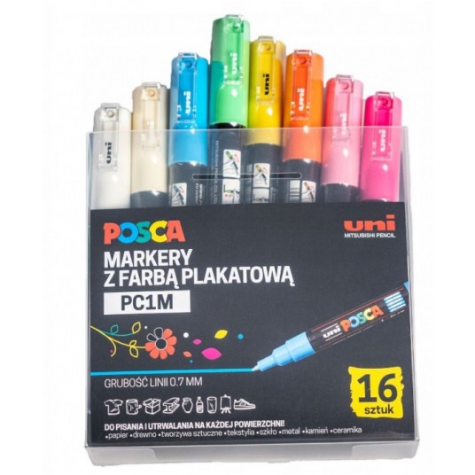 Pc-1m zestaw markerów uni posca komplet 16 kolorów