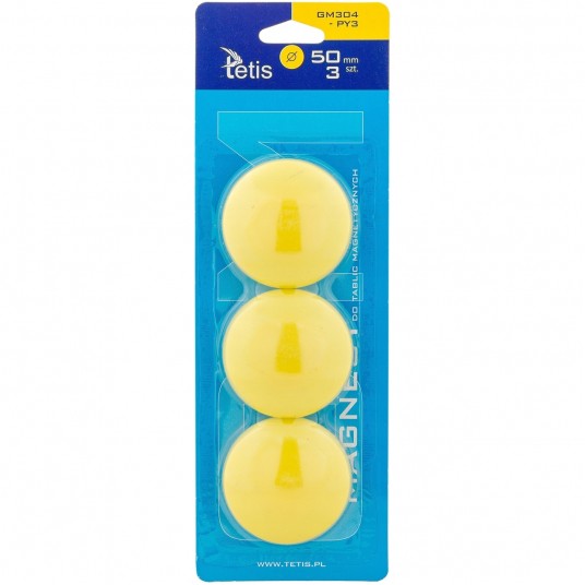 - Magnesy Tetis są niebywale mocne i trwałe, zapewniają prosty i praktyczny sposób przymocowania dokumentu lub notatki do powierzchni magnetycznych - Doskonałe do tablic i innych powierzchni magnetycznych - Pakowane na blistrze - Średnica: 50 mm - Kolor: żółty - Ilość: 3 sztuki