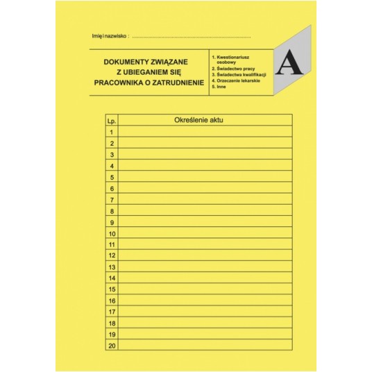 Konstrukcja segregatora ułatwia pionową archiwizację półkową. Wykonany jest z tektury oblewanej folią PVC, wyposażony w: - mechanizm 2 ringowy - 4 sztuki przekładek personalnych ABCD (według wzoru kodeksu pracy) - kieszonkę do opisu na grzbiecie - grzbiet: 25 mm