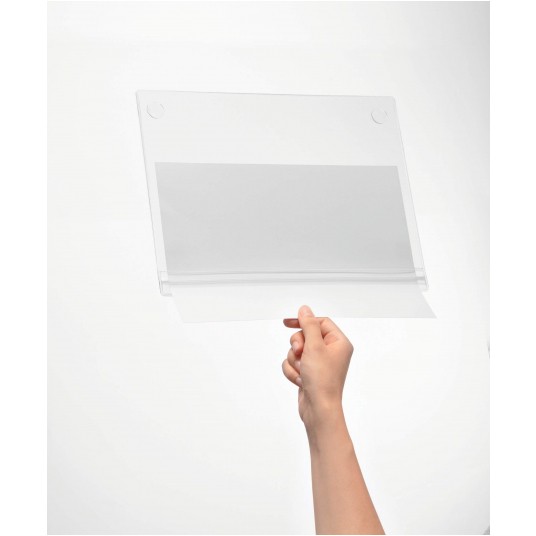 - wodoszczelne kieszenie są idealne do umieszczania informacji na zewnątrz, w takich miejscach jak centra ogrodnicze, sauny, baseny, bramy i tablice informacyjne, gdzie możliwy jest kontakt z wodą - wodoszczelne zamknięcie dociskowe chroni zawartość kieszeni, szczególnie podczas deszczu, w warunkach wilgoci i brudu - przezroczyste tworzywo sztuczne odporne na promieniowanie UV i warunki atmosferyczne, odporne na zarysowania - może być używany zarówno w formacie pionowym , jak i poziomym