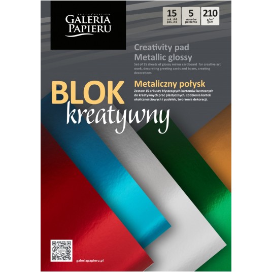 - Kartony lustrzane z metalicznym połyskiem A4 - Zestaw daje możliwość tworzenia wielu kreatywnych prac: kartki okolicznościowe, pudełka, dekoracje - Karton metaliczny nie jest przeznaczony do drukarek - Blok zawiera 15 arkuszy kartonów holograficznych w 5 kolorach - Format: A4