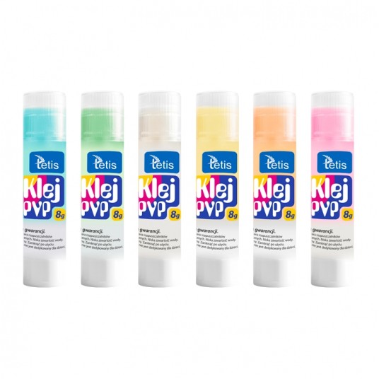 - Klej w sztyfcie kolorowy, bezbarwny po aplikacji