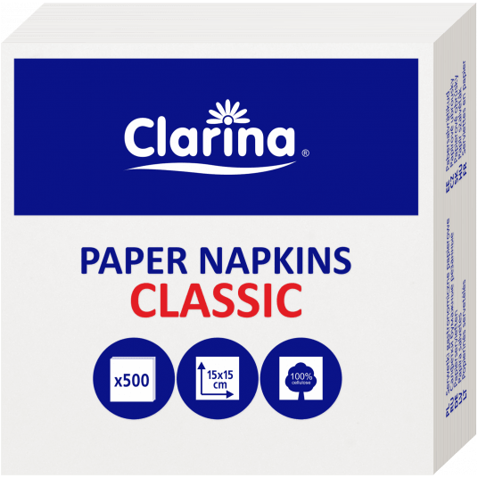 Serwetki gastronomiczne cięte Clarina 1-warstwowe 15x15 500 szt.