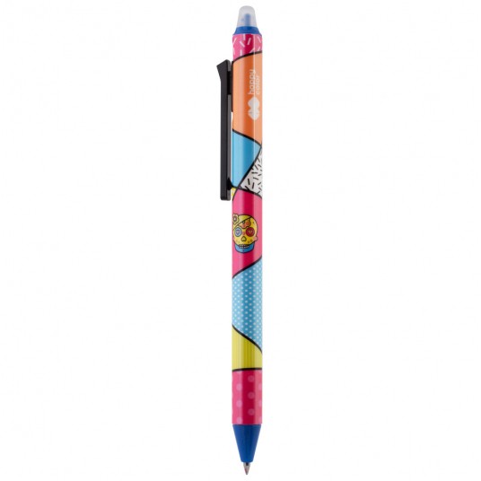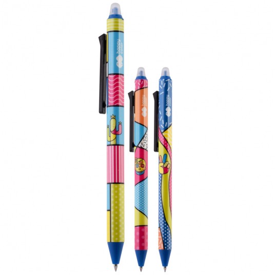 - Wymazywalne długopisy żelowe w kolorowej obudowie - Dzięki unikalnej formule tuszu napisany tekst można łatwo wymazać - Gumka do wycierania znajduje się na skuwce i na końcu obudowy - Wkład w kolorze niebieskim (Crystal blue) - Grubość linii pisania 0,5mm - Na wymienne wkłady