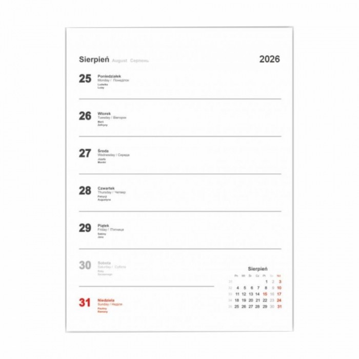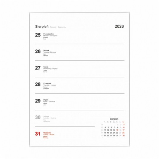 - Kalendarium - jeden tydzień na jednej stronie
