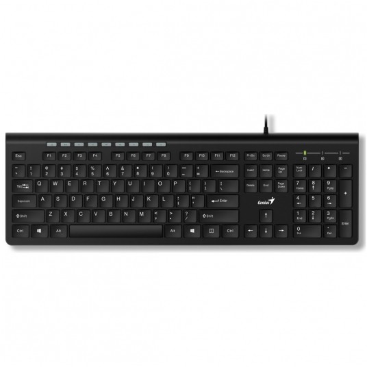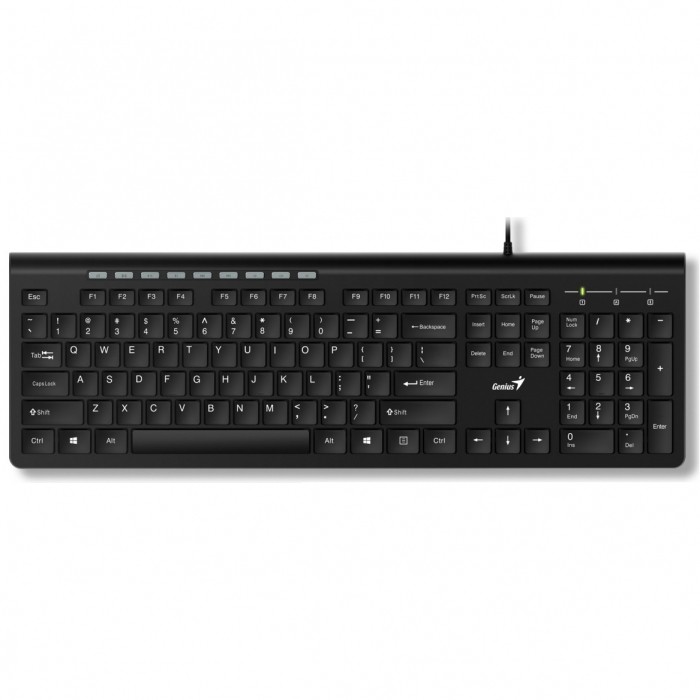 - Klawiatura przewodowa Genius KB-230 z niskim profilem klawiszy - Dziewięć dodatkowych klawiszy multimedialnych ułatwi nawigowanie w trakcie słuchania ulubionej muzyki lub wieczornego maratonu seriali - Klawisze grawerowane laserowo - Niski skok 9 klawiszy multimedialnych - Podświetlana klawiatura: nie - Długość kabla/maksymalny zasięg: 1,50m - Kolor: czarny - Typ złącza: USB 2.0 - Waga: 460g - Komunikacja: przewodowa - Wykonanie/przeznaczenie: business - Ilość Klawiszy: 113 - Wymiary: 442,13 x 141 x 30,90 mm - Profil klawiatury: standardowy - Podstawka pod nadgarstek: nie - Typ klawiszy: membrana - Touchpad: nie - Ilość klawiszy multimedialnych: 9 - Baza SCIP: nie