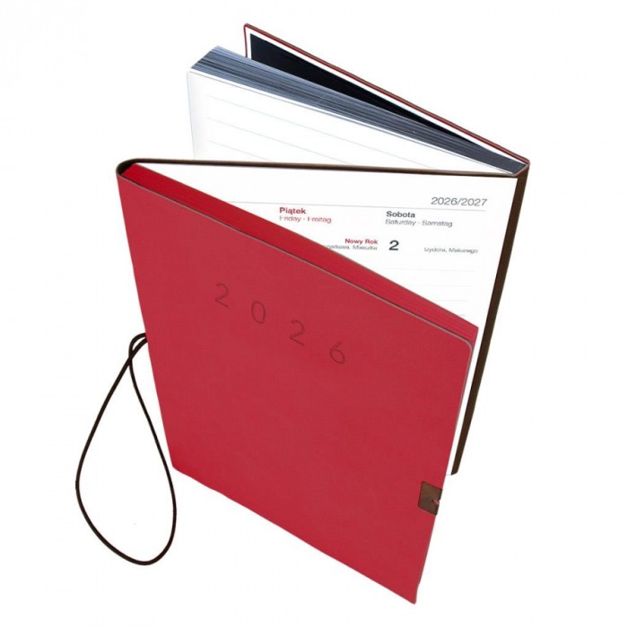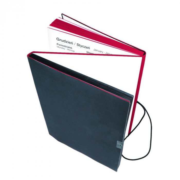 - Zamknięcie na gumkę, koperta na wewnętrznej stronie tylnej okładki, barwione brzegi w kolorze okładki