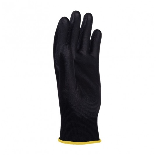 - Rękawice wykonane z dobrej jakości dzianiny poliestrowej w kolorze czarnym, powleczone w części chwytnej czarnym poliuretanem - Przeznaczone do prac montażowych, magazynowych, mechanicznych, elektrotechnicznych, serwisowych, malarskich, remontowych, przemysłowych, ogrodowych oraz zajęć hobbistycznych - Powłoka z czarnego poliuretanu o wysokiej odporności na ścieranie - Zakończone elastycznym ściągaczem - Rękawice ochronne chroniące przed uszkodzeniami mechanicznymi - Kat: II - Zgodność z normami EN 388:2016+A1:2018 (4131X), EN ISO 21420:2020 - Ścieg: 13g - Materiały: poliester/poliuretan - Kolor: czarny - Rozmiar: 8