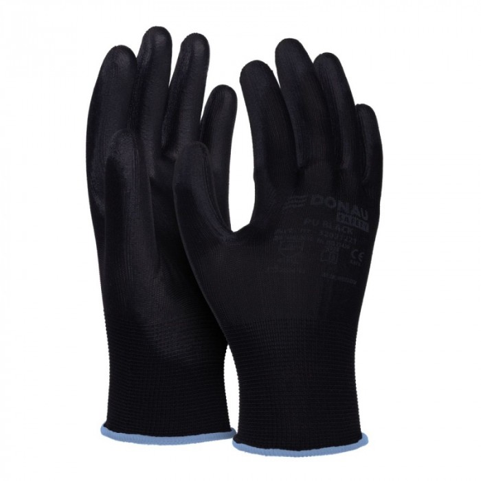 - Rękawice wykonane z dobrej jakości dzianiny poliestrowej w kolorze czarnym, powleczone w części chwytnej czarnym poliuretanem - Przeznaczone do prac montażowych, magazynowych, mechanicznych, elektrotechnicznych, serwisowych, malarskich, remontowych, przemysłowych, ogrodowych oraz zajęć hobbistycznych - Powłoka z czarnego poliuretanu o wysokiej odporności na ścieranie - Zakończone elastycznym ściągaczem - Rękawice ochronne chroniące przed uszkodzeniami mechanicznymi - Kat: II - Zgodność z normami EN 388:2016+A1:2018 (4131X), EN ISO 21420:2020 - Ścieg: 13g - Materiały: poliester/poliuretan - Kolor: czarny - Rozmiar: 9