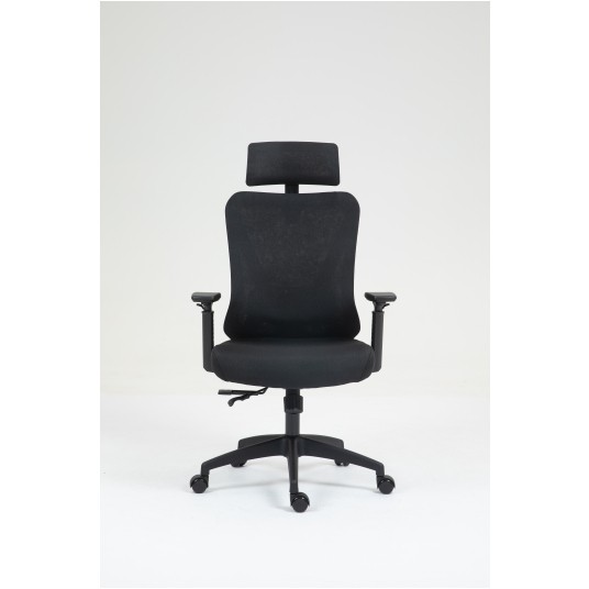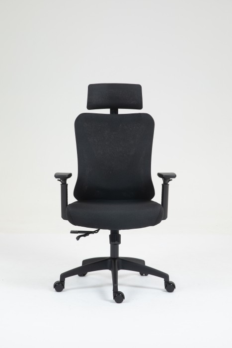 - Ergonomiczne oparcie z regulacją podparcia lędźwiowego (regulacja góra-dół, poduszka lędźwiowa tapicerowana tkaniną)