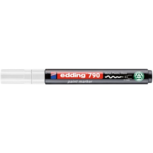 - Marker olejowy do trwałego, wysoce kryjącego znakowania gładkich materiałów, jak np. metal, szkło, plastik doskonale nadaje się również do ciemnych i przezroczystych powierzchni - Okrągła końcówka pisząca o grubości 2-3 mm - Tusz na bazie alkoholu jest szybkoschnący, światłotrwały i wodoodporny - Bezwonny tusz bez dodatku toluenu/ksylenu - Obudowa wykonana z plastiku pochodzącego z recyklingu - Co najmniej 96% całkowitego plastiku użytego w markerze pochodzi z recyklingu poużytkowego - Grubość linii pisania: 2-3 mm - Kolor: biały
