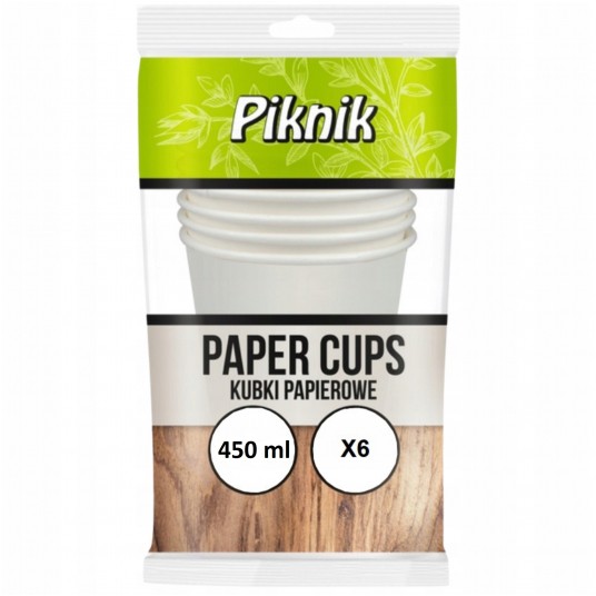 - Kubki papierowe "Piknik" są wykonane wyłącznie z najwyższej jakości surowców - Posiadają niezbędne atesty dopuszczające do kontaktu z żywnością - Biodegradowalne - 6 sztuk w opakowaniu - Pojemność 450 ml