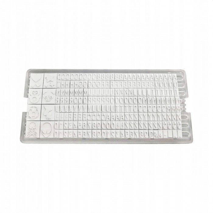 - Stempel z płytką tekstową do personalizacji za pomocą wymiennych czcionek