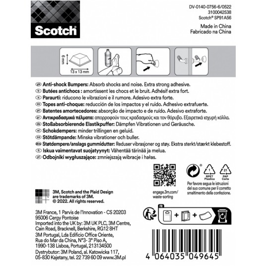 Odbojniki wygłuszające SCOTCH, samoprzylepne, kwadrat, 13x13mm, 10 szt., przezroczyste
