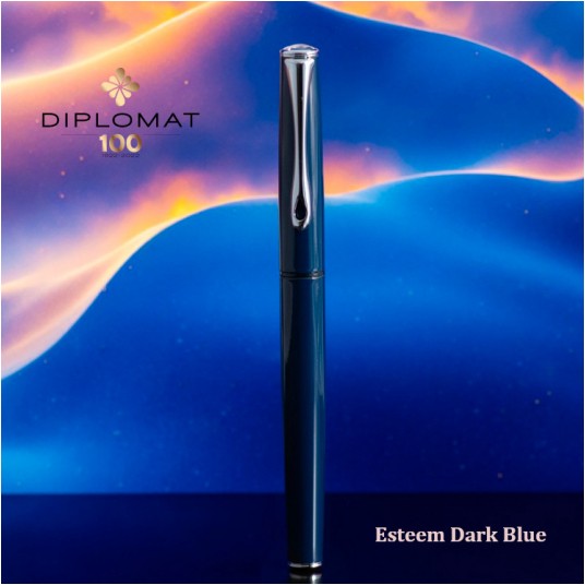 - Pióro wieczne niemieckiej marki DIPLOMAT z kolekcji Esteem Dark Blue - Kolekcja Esteem łączy oryginalny, cylindryczny kształt pióra wiecznego z klasycznymi kolorami - Idealna waga wynika z połączenia kształtu i zastosowania mosiądzu zapewniającego doskonały komfort pisania - Pióro wieczne wykonane z mosiądzu pokryte ciemnogranatowym lakierem - Detale chromowane - Stalówka wykonana ze stali szlachetnej - Podwójny system napełniania, konwerter wymienny na naboje atramentowe - Pióro wieczne umieszczone w firmowym opakowaniu