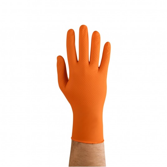 GRIPZZLY – RĘKAWICE, NITRYLOWE, BEZPUDROWE Z DIAMENTOWĄ TEKSTURĄ – POMARAŃCZOWE