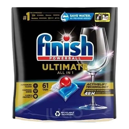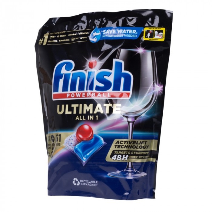 - Tabletki do zmywarek Finish Quantum Ultimate - W opakowaniu znajduje się 30 żelowych kapsułek do zmywarek, rekomendowanych przez wiodących producentów zmywarek - Skutecznie eliminują zabrudzenia i usuwają uporczywe plamy oraz osady z kawy i herbaty, dodatkowo dbając o połysk sztućców i metalowych elementów naczyń - Kapsułki zapewniają również skuteczną ochronę filtrów zmywarki oraz szkła i zapobiegają osadzaniu się kamienia - Działają w niskich temperaturach - Usuwają także przypalone resztki jedzenia i nadają naczyniom olśniewający blask bez smug - Proste w użyciu – bez konieczności dodatkowego rozpakowywania i brudzenia rąk - Zapach: regular - Pamiętaj o środowisku! Opakowanie po kapsułkach w pełni nadaje się do recyklingu - Idealny połysk po zmywaniu - Potrójna siła kapsułki: moc czyszczenia, odtłuszczania i nabłyszczania - Usuwa nawet trudne zabrudzenia bez namaczania wstępnego - Ochrona filtrów zmywarki - Samorozpuszczalna folia - Ochrona szkła i srebra - Sposób użycia: Kapsułki pokryte są folią, która samoistnie się rozpuszcza podczas zmywania. Dlatego trzymaj je zawsze tylko suchymi dłońmi. Dla najlepszych rezultatów do każdego zmywania, bez względu na rodzaj zabrudzenia, dla wszystkich twardości wody, umieść jedną tabletkę w suchym dozowniku. Nie zdejmuj folii z kapsułki. Pamiętaj, by po użyciu zamknąć torbę z pozostałymi tabletkami na wygodny suwak. Chroń produkt przed wysokimi temperaturami i wilgocią - 375g