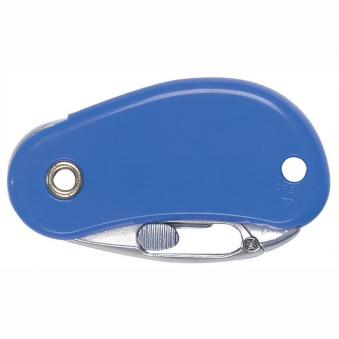 - Wyposażony w niewielkie, automatycznie chowane ostrze i kolec do prucia taśmy pakowej.