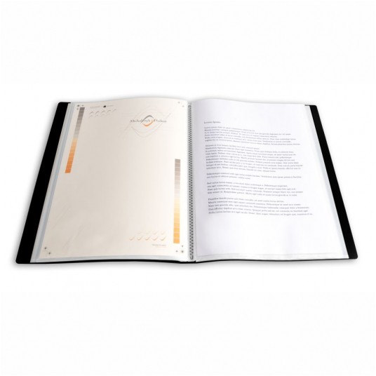 - Teczka ofertowa PP z koszulkami - Posiada grzbiet i kieszeń opisową na przedniej okładce, format A4 - Wymiary teczki: 305x235 mm, grubość tworzywa PP: 0,40 mm - Ilość koszulek: 40 - Opakowanie: folia, 1 sztuka